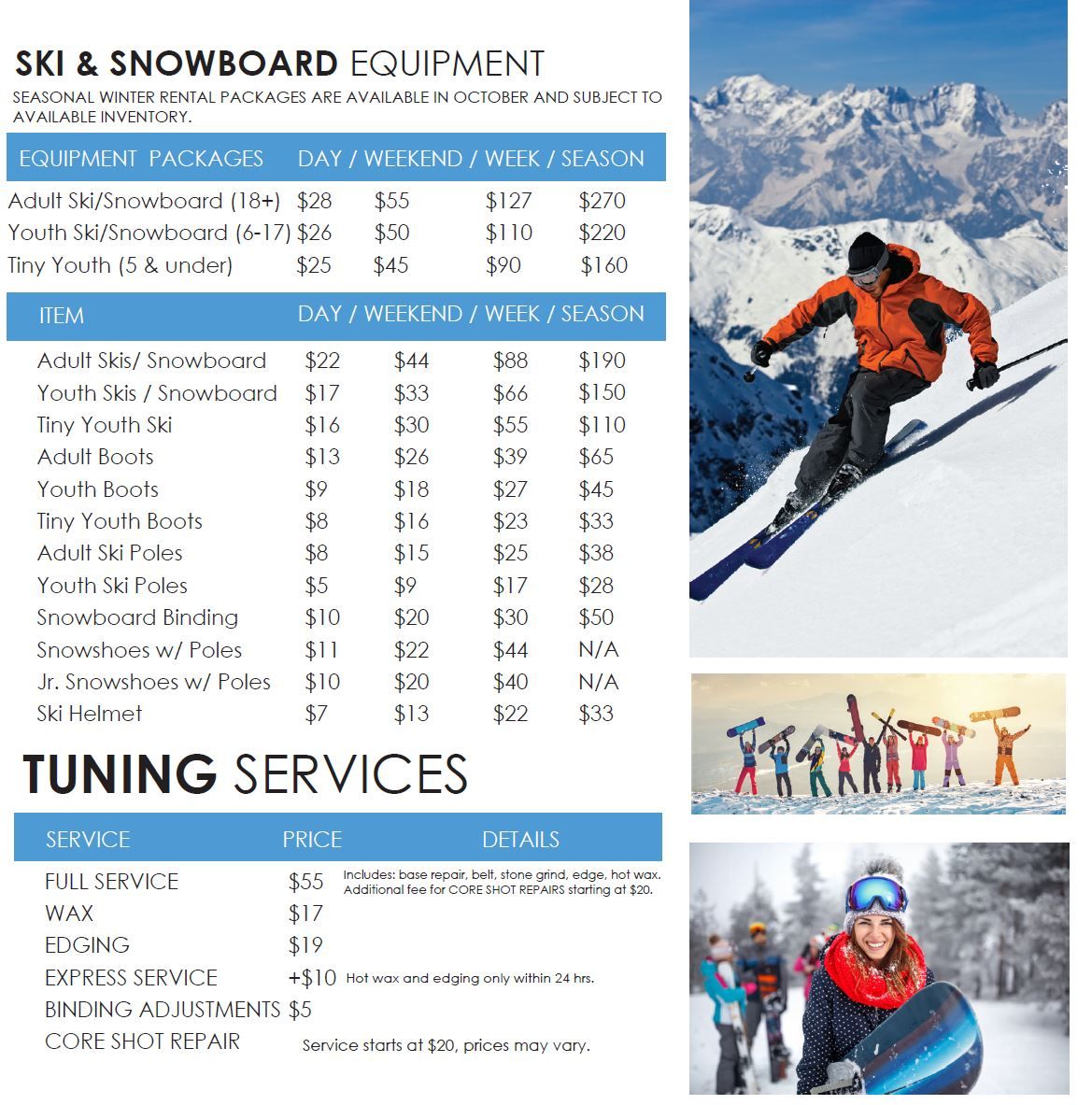 - Ski/Snowboard Rental & Tuning/Repair Services